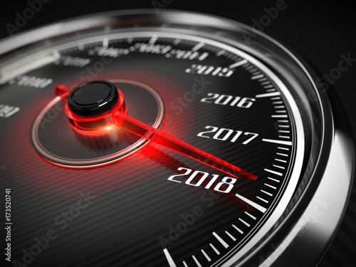 2018 year car speedometer concept. 3d rendering