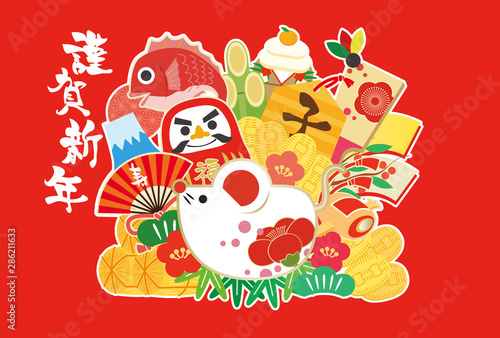 年賀状 年賀素材 2020 謹賀新年 子年 ねずみ 縁起物