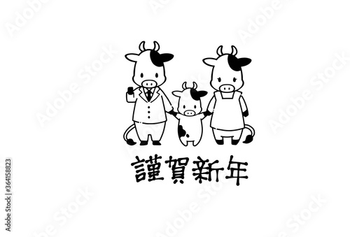 2021年年賀状素材シンプルで可愛い牛のイラスト