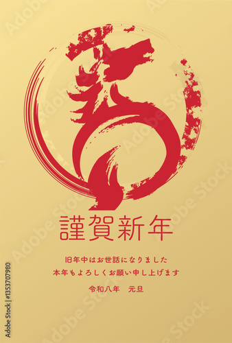 年賀状 年賀 2026 午 午年 馬 干支 墨絵 水墨画 筆文字 テンプレート デザイン イラスト