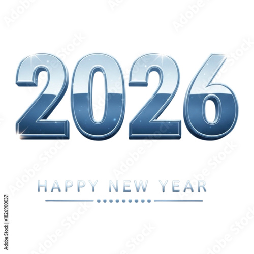 2026 Happy New Year Metallic Text on White Background celebration