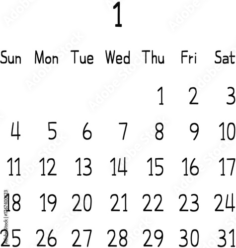 2026 Monthly Calendar Template (Black)-January