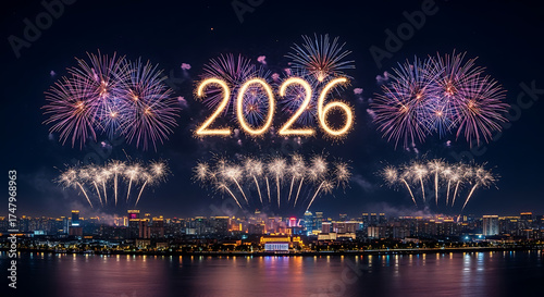 2026 New Year Fireworks Over City Skyline Celebratory Atmosphere