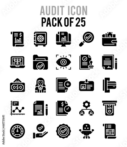25 Audit Glyph icon pack. vector illustration.