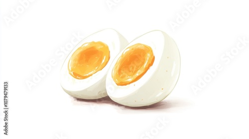 2D cartoon illustration of a hard boiled egg set against a white backdrop