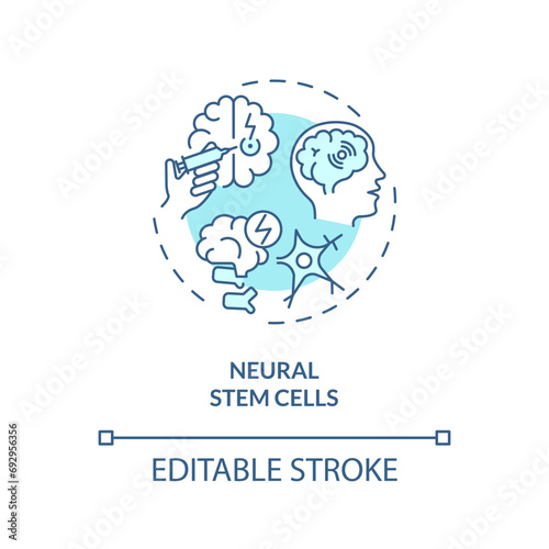 2D editable blue neural stem cells icon, monochromatic isolated vector, thin line illustration representing cell therapy.