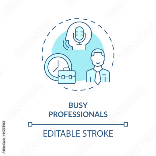 2D editable busy professionals thin line blue icon concept, isolated vector, illustration representing voice assistant.