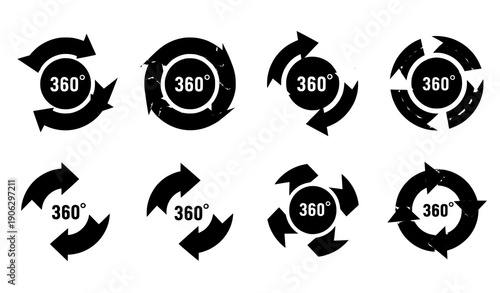 360 Degree Panorama Rotation Symbols Vector Circle Arrow Icons for Web and Mobile Applications