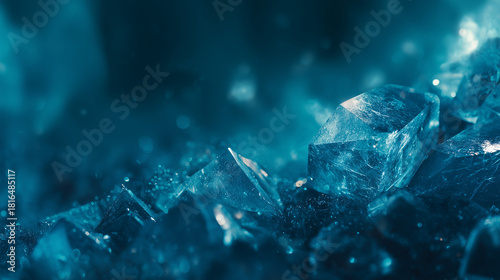 深いサファイアブルーのクリスタルの抽象背景、暗く輝く幾何学的な結晶の3Dイラスト