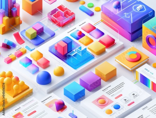 3D Abstract Composition with Geometric Shapes and Vibrant Colors