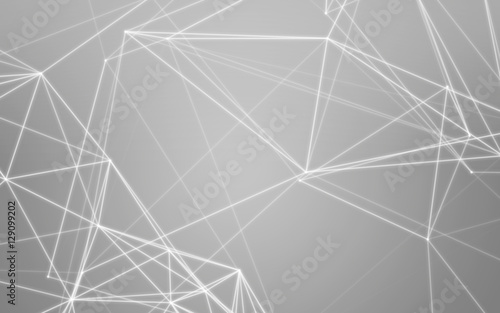3D Abstract Polygonal White Background with Low Poly Connecting Dots and Lines - Connection Structure - Futuristic HUD Background