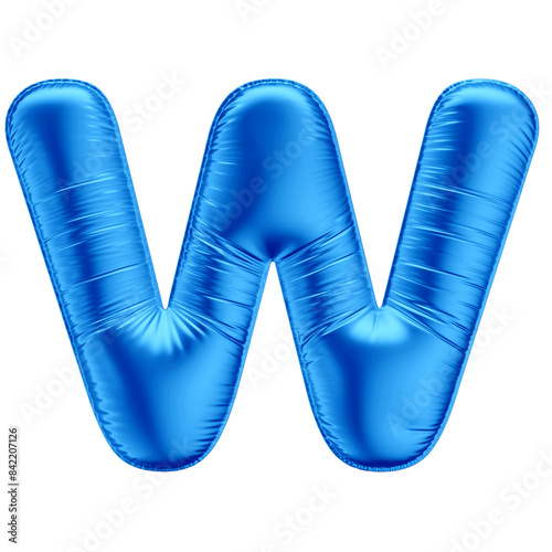 3D Alphabet Letter W in Blue Balloon for Father's Day, Boy's Birthday with Transparent Background
