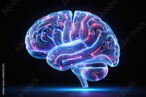3D anatomical illustration of a human brain with a glowing x-ray effect, highlighting health, intelligence, and the mind