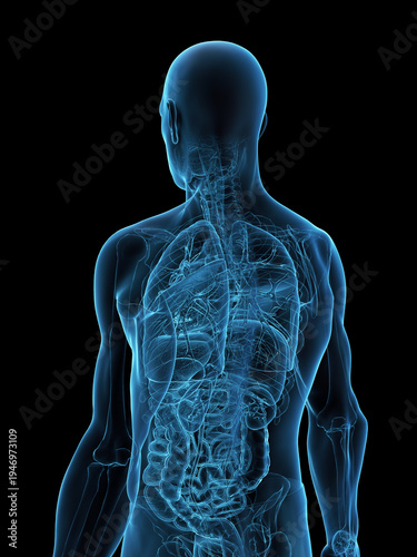 3D Anatomical Rendering Highlighting The Organs Of A Male
