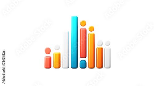 3D Bar Chart with Colorful Rounded Bars on Transparent Background