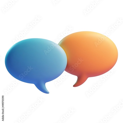 3D Blue Orange Speech Bubbles plastic icon on white background