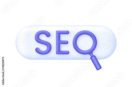 3D Browser SEO search illustration. SEO optimization for marketing. Search bar icon. Research concept