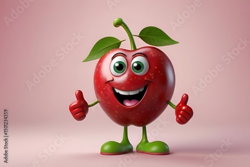 3D Cartoon Cherry Character Thumbs-Up Red Fruit Mascot