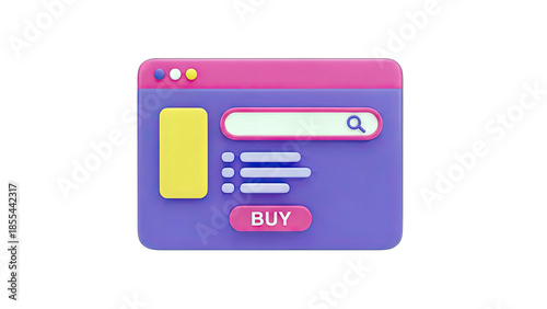 3D cartoonish browser window with search and buy button on transparent background