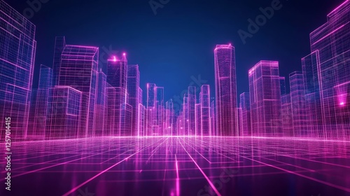 3d city wireframe dark blue background