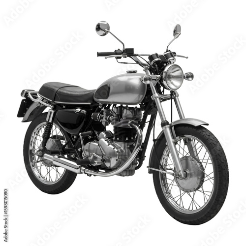 3D Classic Silver Motorcycle Isolated on Transparent Background