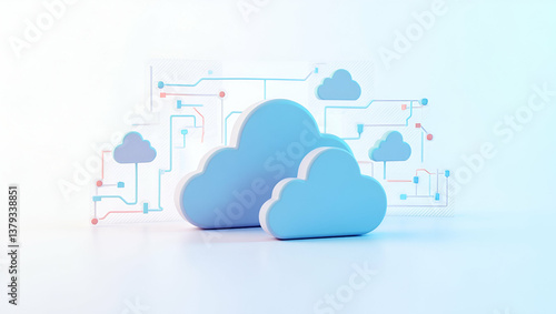 3D Cloud Banking Wallpaper: Minimalist Icons & Digital Circuitry for Secure Online Finance Management - Modern Corporate Aesthetic with Gradient Design