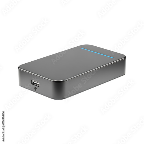 3D external hard drive icon (2).Gray rectangular power bank with usb port isolated on transparent background