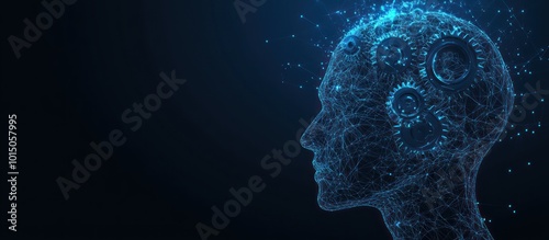 3d gears in head digital low poly wireframe