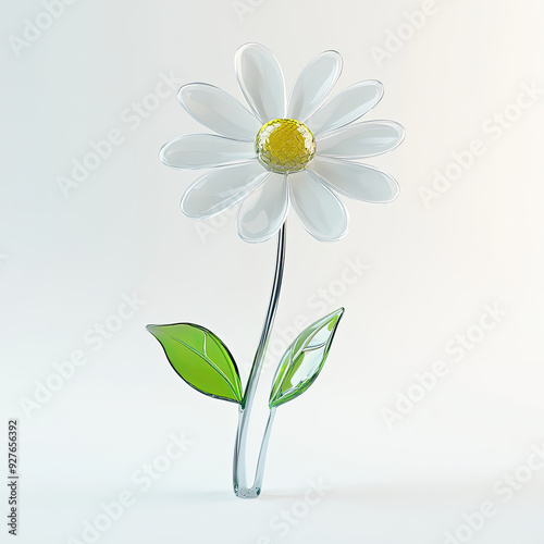 3D glass daisy flower isolated on a white background. Sketch, template for a greeting card, romantic invitation. Exquisite decor, illustration for printing on fabric, catalogs of decorative cosmetics,