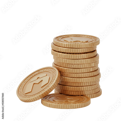 3D Golden Coins Stack Currency Wealth on Transparent Background