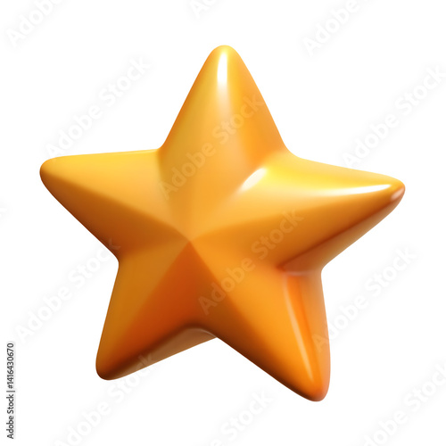 3D Golden Star: Award and Favorite Symbol on Transparent Background