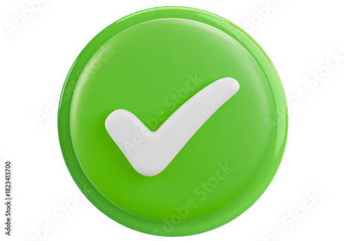 3D Green Check Mark Icon for Success, Approval, and Completion on White Background