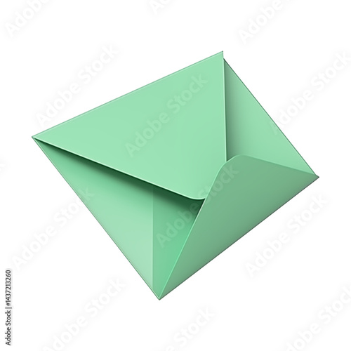 3D green Envelope Icon – Letter Message Render Isolated on Transparent Background