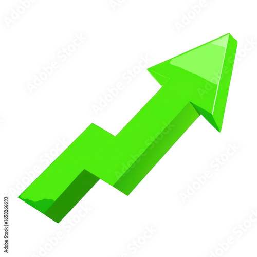 3d green upward trend arrow with sharp angles illustrating growth and progress transparent background