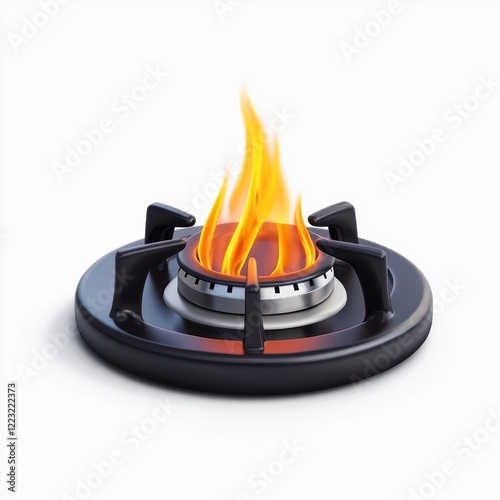 3D icon cartoon gas flame burning on a stovetop, isolated on a white background