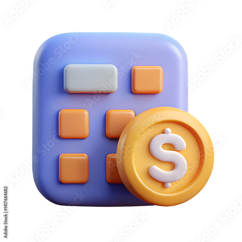 3D icon, Minimalistic , Cash with Calculator Icon