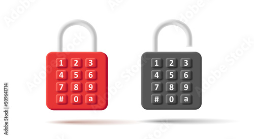 3d icon of padlock with code lock of buttons with numbers combination
