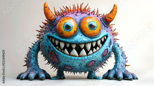 3D Illustration - Playful Monster, Smiling Creature, Horns, Teeth, Fantasy Art