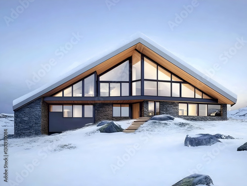 3D Illustration Modern Cabin Winter Snow Landscape Architecture Home Design
