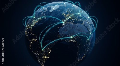 3D Illustration Of A Digital Earth Globe With Connection Lines On Dark Background