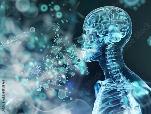 3D illustration of a human and pathogens