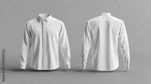 3D illustration of front and back views blank long-sleeve collared shirt for t-shirt print design presentation, with clear windows and shadow