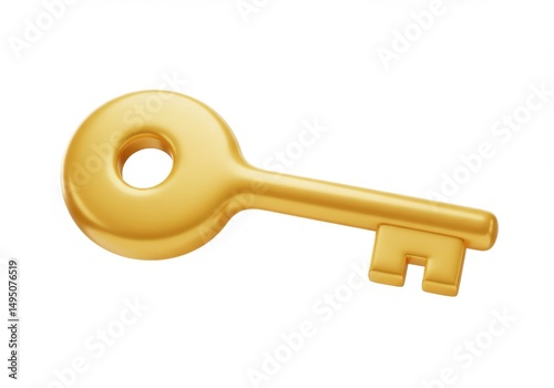3D Illustration of Golden key isolated on white background, a symbol of access and security
