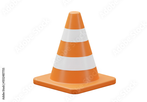 3D Illustration of Orange and White Traffic Cone for Road Safety