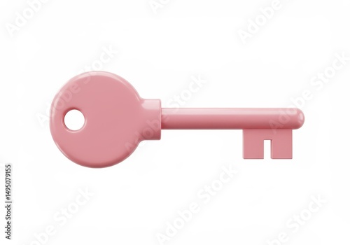 3D Illustration of Pink key isolated on white background representing security and access
