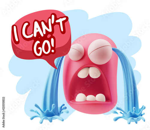 3d Illustration Sad Character Emoji Expression saying I Can't Go