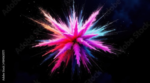 3D illustrative drawing of multicolored powder explosion on dark background