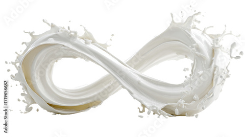 3D Infinity Loop Made of Milk Splashes on Transparent Background