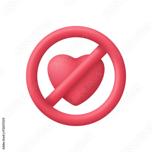 3D Love Prohibition Symbol Icon. No Heart. Stop Love concept with heart icon