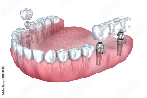 3d lower teeth and dental implant transparent render isolated on white